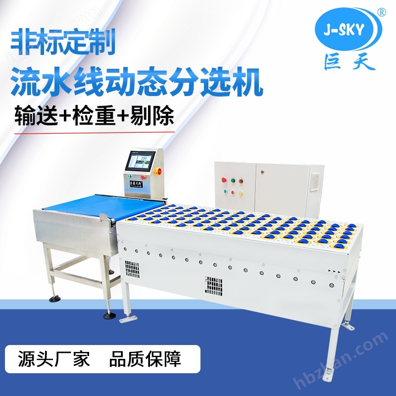 自動(dòng)檢查包裝成品重量是否范圍合格,并由分選機(jī)構(gòu)剔除不合格品。